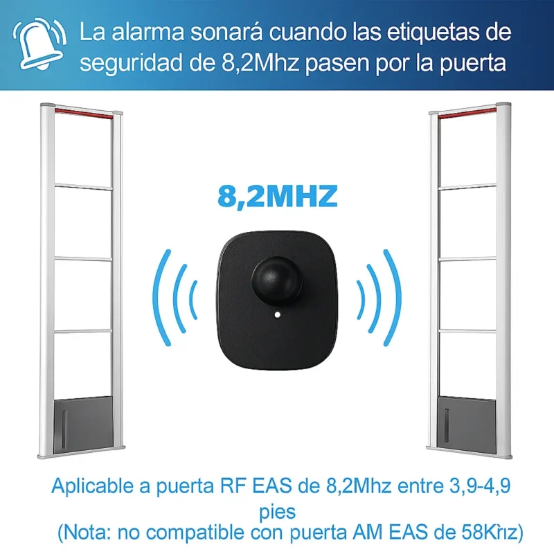 Gracias a su compatibilidad universal con sistemas RF de 8.2MHz, puede integrarse fácilmente a tu sistema existente sin necesidad de modificaciones. Ideal para tiendas de ropa, supermercados, farmacias, minimarkets y comercios en general.